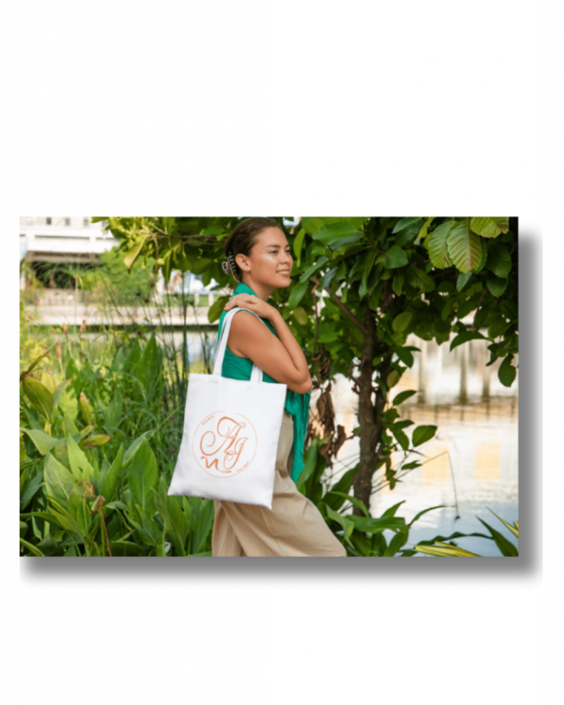 Un ruban délicat souligne la composition, rappelant le geste soigné, la légèreté et l’attention portée à chaque prestation. Le nom complet de l’entreprise vient s’ancrer dans la lettre A, comme une invitation à savourer l’instant présent et à s’imprégner de sa magie.